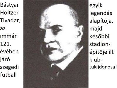2024.03.05.1898 őszén sok helyen még azt sem tudták, mi is az a futball, Szegeden azonban a legendás "Hétválasztó" Vendéglő különtermében tizenhárom megszállott férfiú ült össze egy új sportág (amely mostanra már a világ messze legnépszerűbb játéka !!), a labdarúgás szegedi meghonosítása céljából, majd Bástyai Holtzer Tivadar (egy néhány évvel korábbi címlap-fotónkon) lett nem sokkal később a szegedi futball egyik legnagyobb mecénása...
