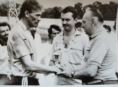Címlap-fotónk egyébként az 1988-as Szeged SC-Baja 3-1-es összecsapás előtt készült a legendás szentélyünkben, a Felső Tisza-parti stadionban, amikor e sorok írója (középen) épp átadja Bogdán Istvánnak (balról látható a "Hosszú" becenévre hallgató, kiváló képességű középhátvéd) a kanadai magyar újságíró, az ex-szegedi focista, Szuper Géza által fölajánlott "Toronto Bridge"- díjat az idény legjobb szegedi labdarúgójának!