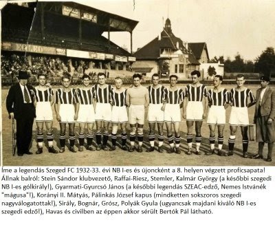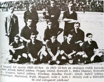 Csak érdekességként: a vidékbajnoki döntőt a II. félidőben rúgott mesterhármasával egymaga eldöntő Stein-Hapa Sándor (lenti archív csapatfotónkon balról az első!) tíz évvel később már a legendás és még a Real Madriddal ill. az akkori francia bajnok Racing Párizzsal (5:2 Szegeden, 3:3 Párizsban!) is játszó Szeged FC kiváló vezetője lett!