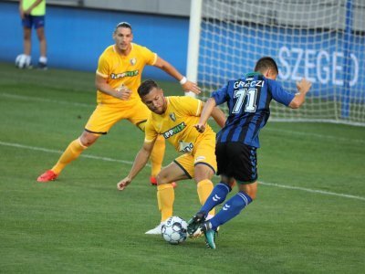 A sárgában játszó vendégek megállították a szegedi kék-feketéket: a félidőben még vezettek, majd Germán Tamás egyenlítése után Gajdos 11-esét a Fradi egykori kiváló kapusa, Holczer Ádám bravúrosan védte...