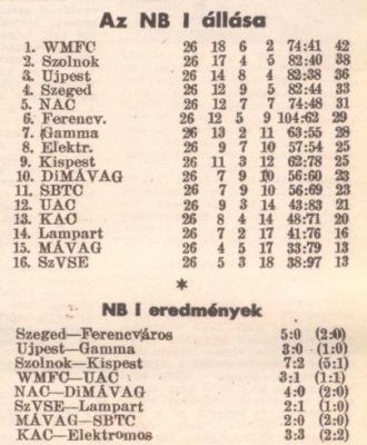 A hazaiak Harangozó Sándor, Seper Imre, Gyarmati-Gyurcsó János (a későbbi remek SZEAC-tréner!) ill. a válogatott Nagy Antal remek találataival (archív fotónkon az ugyancsak válogatott szegedi kapus, Tóth György mellett jobbról) valósággal kiütötték az újonc győrieket (4:1)!