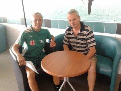 Holczer Ádám (Nyilas Elek sportigazgató mellett balról), a Fradi korábbi kiváló kapusa 2018 őszén még tévés kupameccset is játszott a szegedi Vasutas-stadionban: