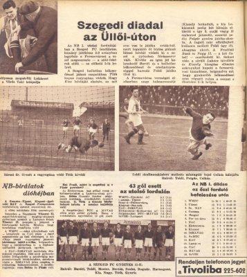 - A Fradi elleni 5:0-ás meccsünkön szerzett "mesteri négyesemről" való igaz, hosszú órákig tudnék mesélni...- kacsintott rám ilyenkor vidáman a '70-es,'80-as években a szegedi Centrum Áruházban totót-lottót árusító Kalmár György (lenti archív fotónkon Szeged eddigi egyetlen NB I-es gólkirálya!) - és...tényleg órákig mesélt, kiszínezve, elém tárva minden apró részletet... S ezeket egyszerűen nem lehetett megunni!!! (Ilyenkor irigyeltem csak igazán az áldott emlékű Dobsa Sándor Nagyapámat, aki mindezt "testközelből", az első meccsüktől az utolsóig - 35-40 éves fanatikus drukkerként - egytől egyig átélte. A mai "kapicsos generációknak" pedig mi is jutott?! Taksony, Iváncsa, Dunaharaszti és a többiek..., A szerk.)